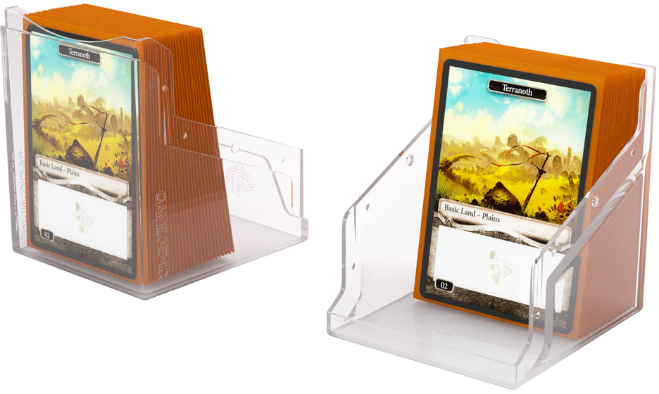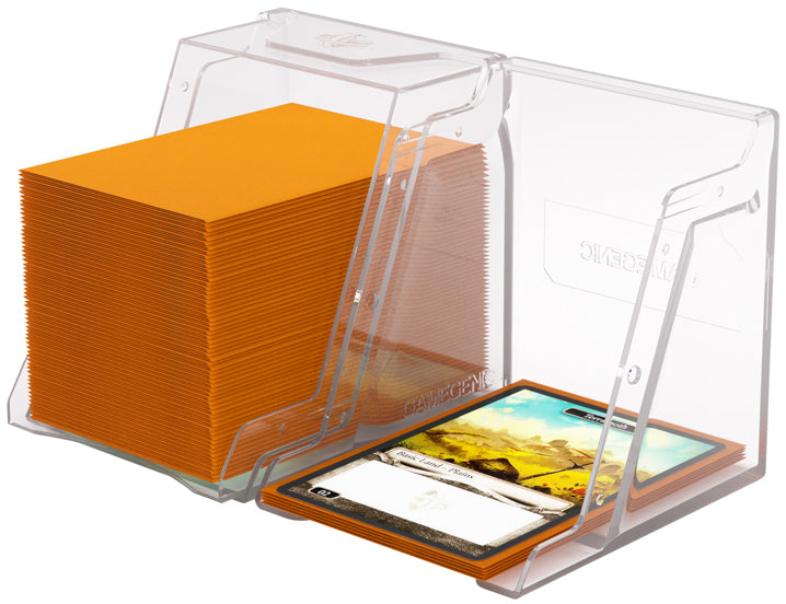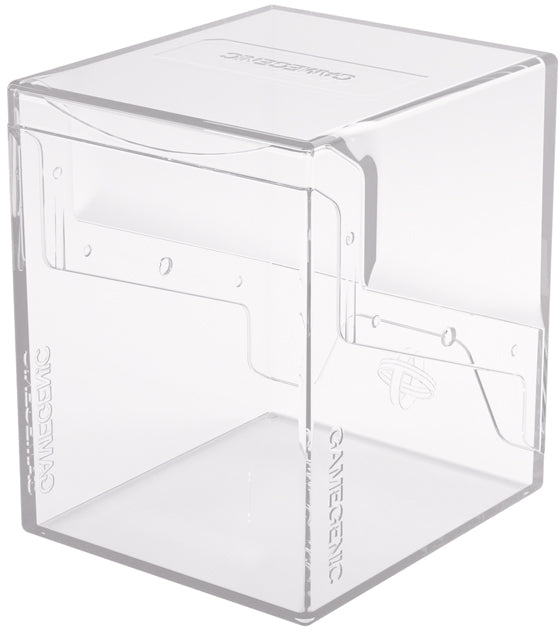 The Gamegenic Bastion Deck Box 100+ XL Clear is a very compact and rock-solid deck box to safely protect up to 100 double-sleeved cards in Thick Inner Sleeves. It also holds Mini Snap and Slide Card Cases as well as Cube Pockets.